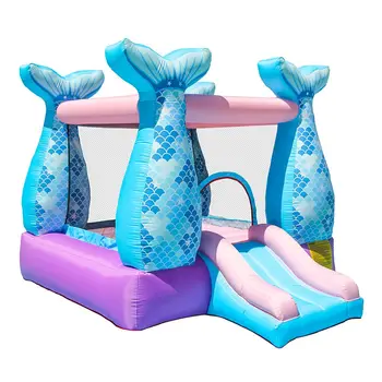 Best . (20% Off) Buy Blue Little Mermaid Bounce House Inflatable Bouncy Castle With Air Blower For Kids Party Backyard Garden Play Homeuse Easy SetUp Price Online.
