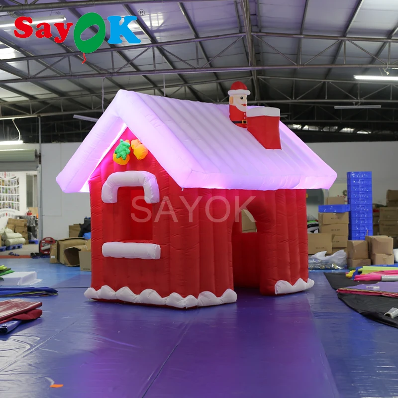 Special Offer Sayok 3m Inflatable Christmas Santa Claus House With LED Lights And Air Blower For Yard Home Christmas Decoration Discount 0% Today!