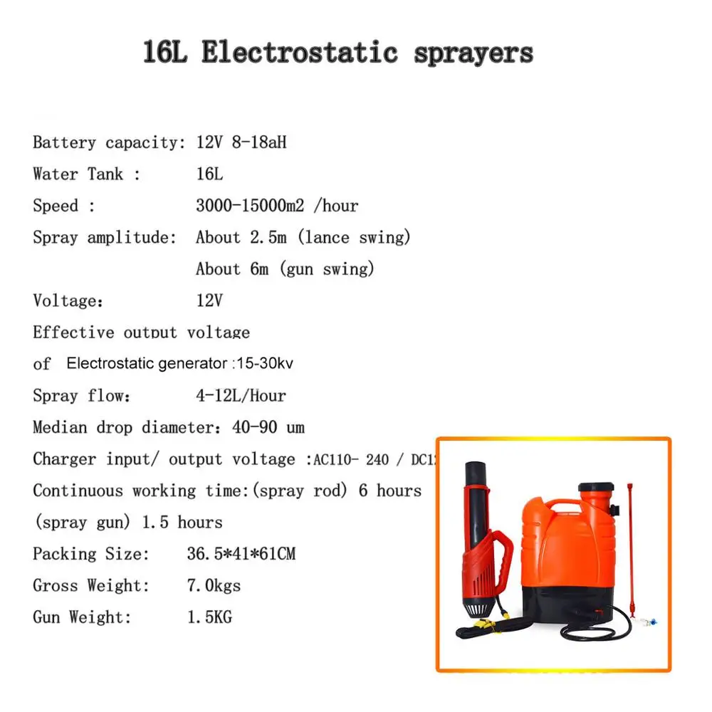 Product Name: 16L ULV Fogger Machine Electrostatic Sprayer Disinfection Sprayer Air Blower Knapsack Lithium Battery Rechargeable Sprayer