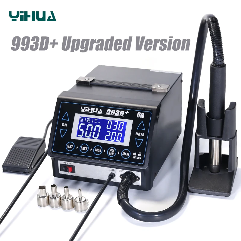 Product Name: LCD Touch Screen Soldering Station YIHUA 993D Hot Air Gun Solder Blower 1300W BGA Rework SMD Soldering Free Shipping